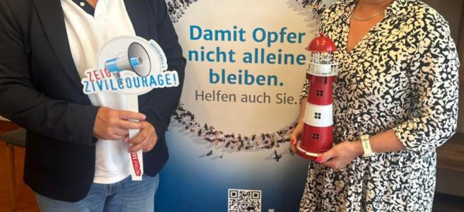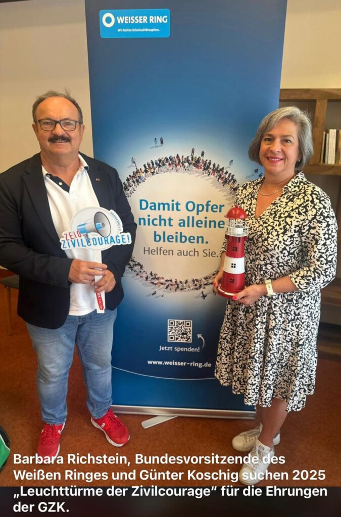 Foto: WEISSER RING: Barbara Richstein, Bundesvorsitzende und Günter Koschig, Außenstellenleiter in Goslar, suchen die „Zivilcourage Leuchttürme 2025“ für die GZK