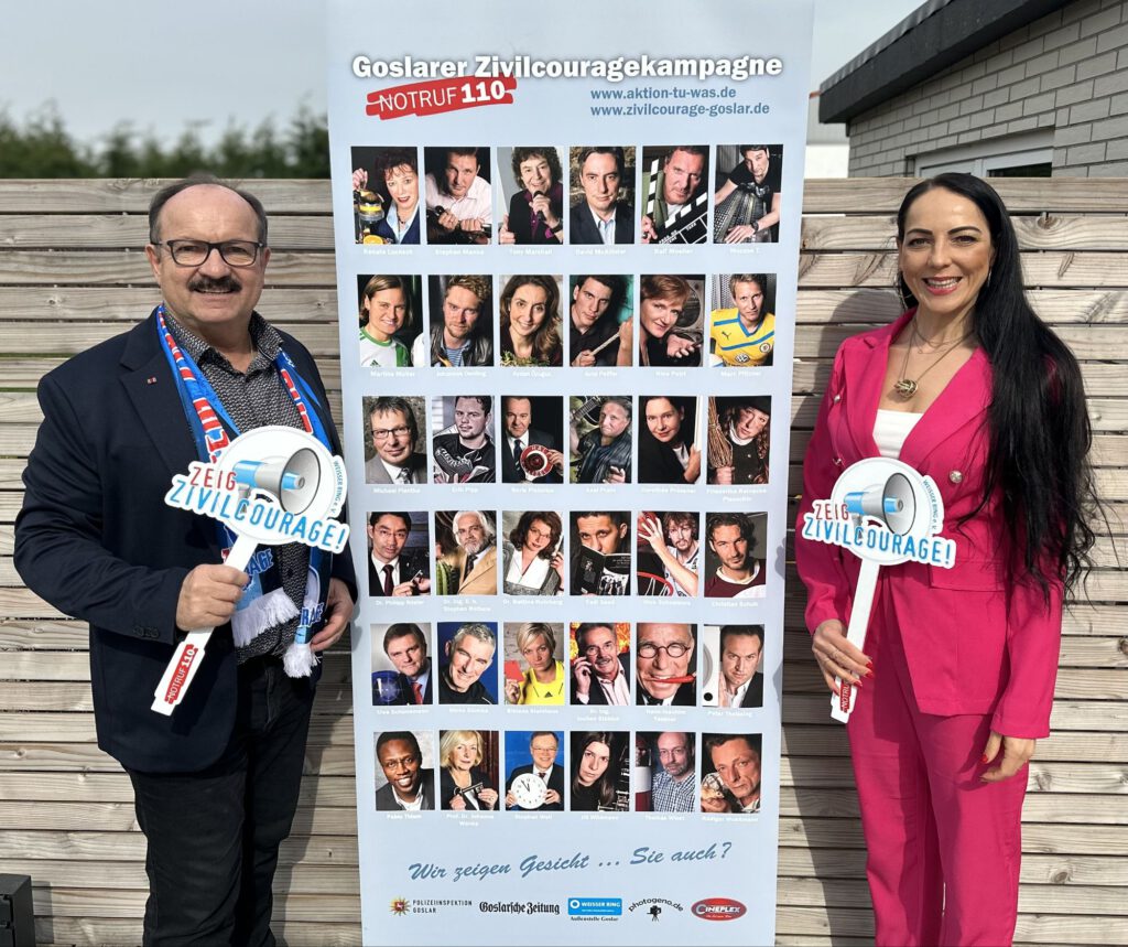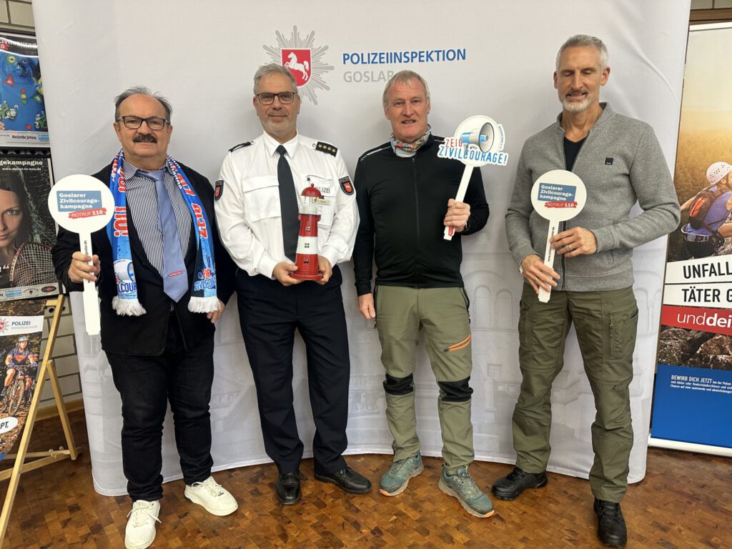 Die Goslarer Zivilcouragekampagne (GZK) ehrt seit 2010 jährlich couragierte Bürgerinnen, die bei Straftaten oder Notsituationen im Landkreis Goslar und darüber hinaus nicht weggeschaut, sondern geholfen haben. In diesem Jahr konnten 9 Personen von prominenten Laudatoren bei der Polizeiinspektion Goslar für Ihren Einsatz im Jahr 2024 geehrt werden. Für die nächsten Ehrungen im Frühjahr 2026 benötigt die Jury wieder die Mitwirkung der Bevölkerung, um alle Preisträgerinnen mit persönlichen Urkunden und Kinokarten bzw. für herausragende Einsätze mit einem Pokal von prominenten Laudatoren ehren zu lassen. Die Bundesvorsitzende des WEISSEN RINGES Barbara Richstein findet, dass Zivilcourage keine Frage des Alters ist. „Jeder kann mal in eine bedrohliche Situation kommen, in der couragiertes Handeln von Zeugen wertvoll. Allein das Betätigen des Notrufes 110 kann Leben retten. Die GZK findet ich wichtig, weil sie zum gefahrlosen Handeln auffordert und zugleich Empathie für die Opfer generiert“. „Wir suchen keine Rambos, sondern Menschen, die mit kühlem Kopf die Lage beurteilen sowie die Polizei unter 110 angerufen haben“, so Jurymitglied Rodger Kerst, der Leiter der Polizeiinspektion Goslar. Hinweise auf couragierte Sachverhalte 2025 nimmt Frau Kreft von der Polizei Goslar gern per Email bis zum 20. November entgegen: marion.kreft@polizei.niedersachsen.de. Günter Koschig, Projektleiter der GZK, freut sich, dass bislang über 100 couragierte Bürger von der Kampagne, quasi als „Leuchttürme“ für Zivilcourage“ ausgezeichnet werden konnten. „Mit diesen Auszeichnungen, Plakatausstellungen, Aktionstagen sowie Unterrichten in Schulen, machen wir bundesweit Mut zur Zivilcourage, so Opferhelfer Koschig.