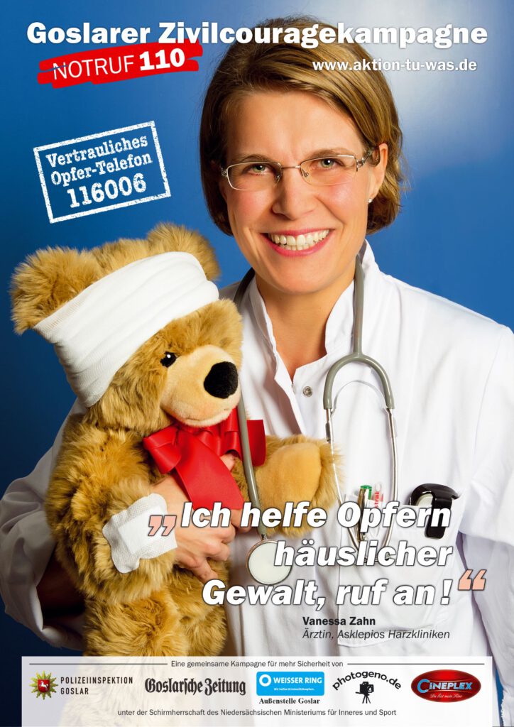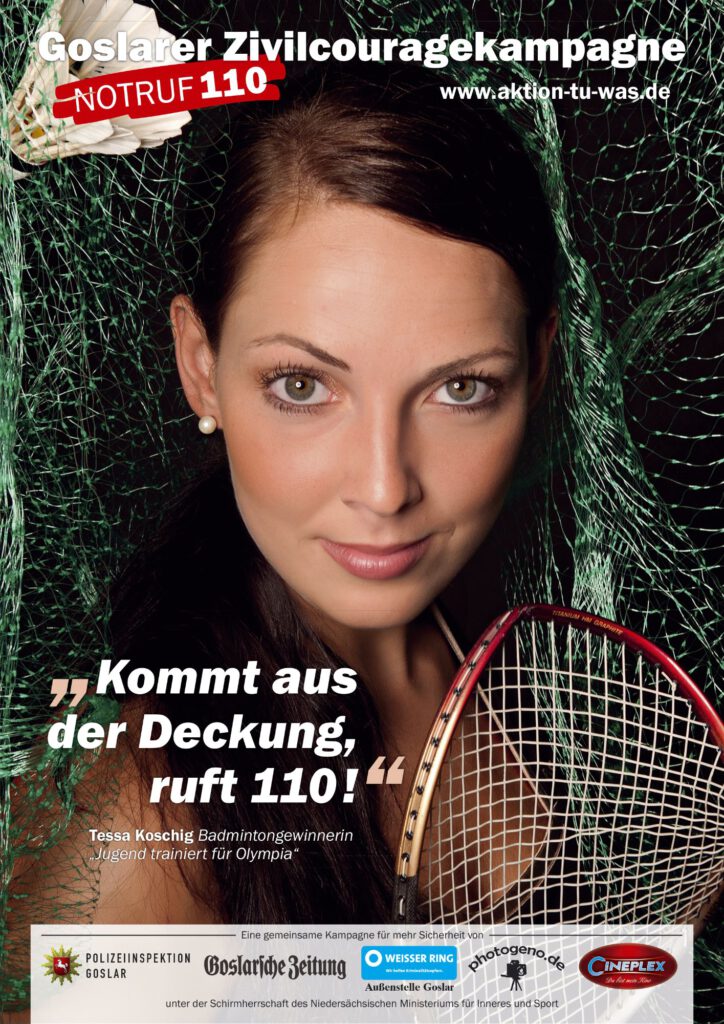 Tessa, du bist eine der ersten Botschafterin der Goslarer Zivilcouragekampagne (GZK), die bei Gewalt oder Notsituationen zum Hinsehen, Handeln und Helfen, zumindest den Notruf 110 zu wählen, auffordert. Wie kann man den Bürgerinnen und Bürgern Mut zur Zivilcourage machen, wenn es um Gewalt gegen Frauen geht?