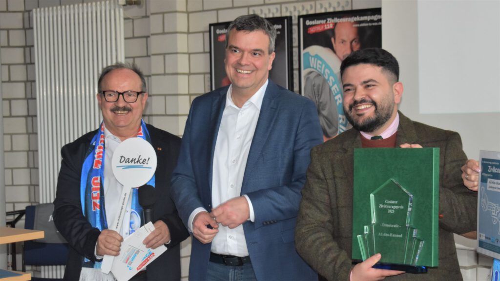 Erneut wurde auch der Sonderpreis für Demokratie vergeben, mit dem in diesem Jahr AliAbou Hamoud, Leiter der Kreisvolkshochschule, Außenstelle Clausthal-Zellerfeld, für seine kreativen Projekte ausgezeichnet wurde. Landrat Dr. Alexander Saipa hob exemplarisch das integrative Projekt im Zusammenwirken mit der Polizei Goslar hervor, bei dem in Gesprächen tiefergehendes Verständnis untereinander gefördert wird.