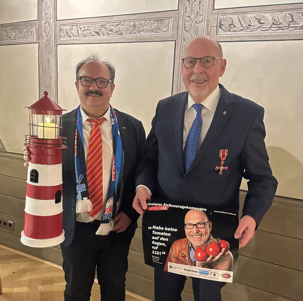 Kurze Zeit später nutzt der Projektleiter der Goslarer Zivilcouragekampagne, Günter Koschig, Eike Hulsch auch für seinen Einsatz für die GZK und dem Weißen Ring zu danken. Ob es von ihm organisierte Fahrten von Kindern und Jugendlichen, die Station bei der Polizei und beim Weißen Ring machten oder es die Einsätze seiner Plakatmotive bei Deutschen Präventionstagen in München, Leipzig, Hannover oder Frankfurt waren, stets verfing sein Motto: „Hab keine Tomaten auf den Augen, wähl 110!“Die Empathie für Kriminalitätsopfer waren für den neuen Ordensträger immer sehr wichtig!